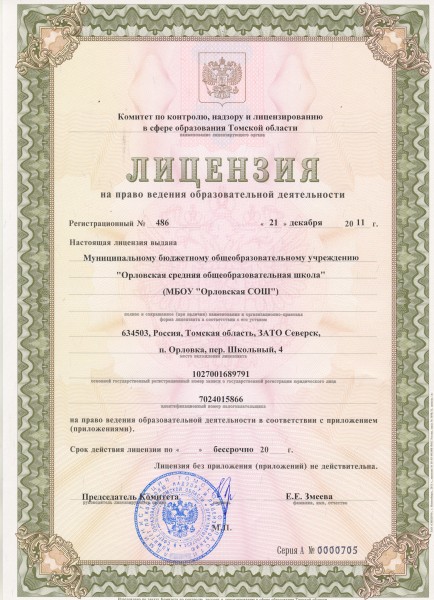 Адрес местонахождения образовательной организации* 634503, Томская область, ЗАТО Северск, п.Орловка, пер.Школьный, д.4
